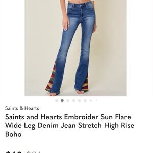 Saints and Hearts Embroidered Sun Flare Wide Leg Denim Jeans ☀️ 👖