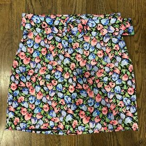 Chic mini skirt with vibrant floral pattern. Features a playful design. Perfect for outings.