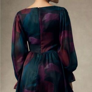 NWOT This elegant chiffon dress features a stunning blend of dark hues, perfect for any occasion. The flowing design and square neckline add a touch of sophistication.