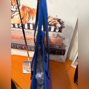 Elegant blue tote with bow detail. Perfect for everyday use. Stylish and functional.
