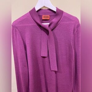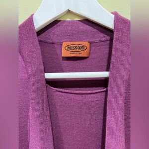 Chic purple cardigan by Missoni. Soft knit fabric with elegant style and optional ribbon detailing in front.