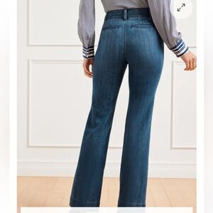 Stylish dark blue flare jeans by Talbots. Perfect for a chic look.