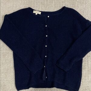 Stay cozy and stylish with this elegant navy blue cardigan sweater. Perfect for layering, this versatile piece adds a touch of sophistication to any outfit.