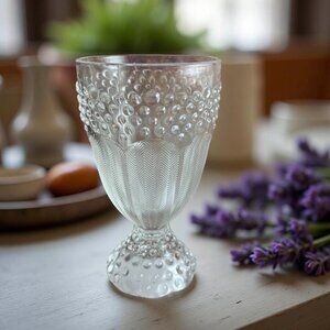 Offered is a set of 1 water gobleta/all purpose glass tumblers in the Emily's Attic Clear for Gorham. This large goblet features intricate hobnail and chevron patterns, offering both aesthetic appeal and practical use for display or serving. These were made from 2001 to 2004 and are now discontinued. Notice some scratching around the rims.