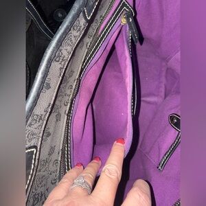 Retired 2022 Disney Haunted Mansion gray and black wallpaper design large tote. Inside zipper doesn’t work. Has worn places around bottom edges as seen in pictures. They are not seen when the bag is sitting.
