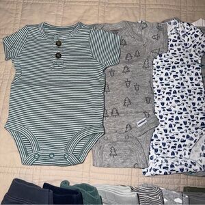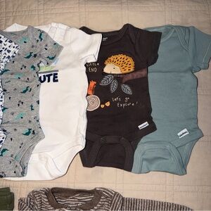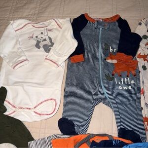 Includes onesies, pants, footie pants, hats, dinosaur booties, and pajamas.