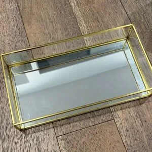 Gold and glass vanity tray. Perfect for organizing your jewelry with style.