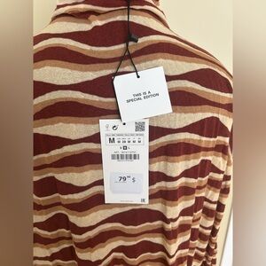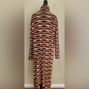 Elegant long sleeve dress with wave pattern. Features red and cream colors. Ideal for stylish outings.size M, BWT