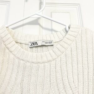 Zara Women's White Ribbed Knit Top