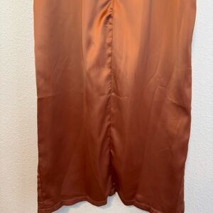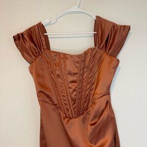 Women's Dress Off-The-Shoulder Split Bustier Corset Satin Dress in Bronze Large