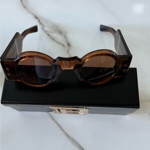 Stylish round sunglasses in a rich brown color. Perfect for a chic look.