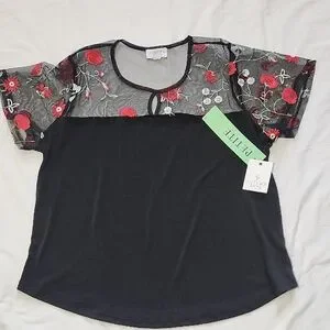 Autumn Skye Black Top with Red Sheer Floral Design