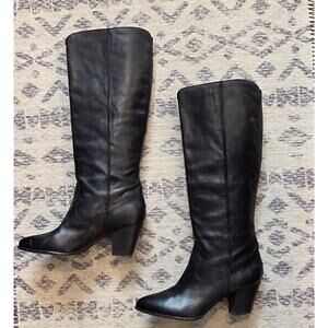 Frye Black Leather Western Knee-High Boots Size 10M Pointed Toe