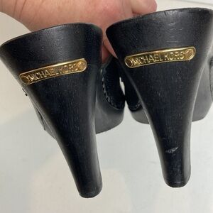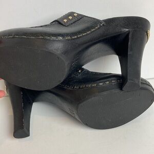 Michael Kors Vintage Black Pebbled Leather Wood Heeled Clog Tassel Trim Sz 7.5 Academia