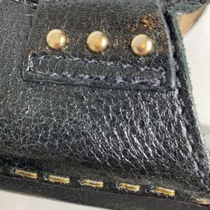 Elevate your shoe game with these vintage Michael Kors wooden 4.5" tall heels. Crafted in Italy, these brown leather mules are accented with tassels and gold studs for a chic look. The 7.5 size makes them perfect for women who love a stylish and comfortable heel. These heels are perfect for any occasion from a casual day out to a formal event.