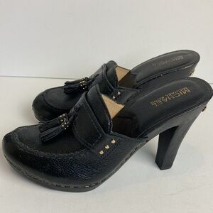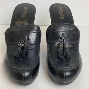 Michael Kors Pebbled Leather Wood Heeled Black Clog Tassel 7.5 Menswear Academia