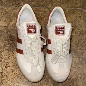 Classic Gola sneakers with white base and brown accents. Stylish and comfortable for everyday wear. Only wore once