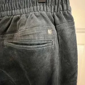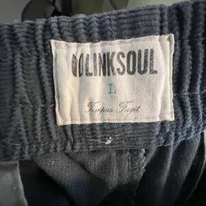 Linksoul Blue Grey Corduroy Drawstring Flat Front Pants