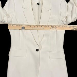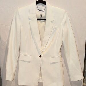 A button sets the tone on this blazer. Traditional tailoring includes a notched collared lapel and front seaming for a flattering silhouette. Ideal for a special occasion, the holidays or any day when you want to stand out.