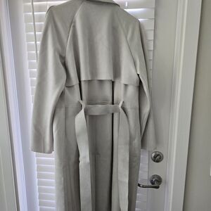 Stay stylish this spring with this elegant off white suede trench coat. Perfect for any occasion, this coat offers both comfort and sophistication. Never worn. Brand new with tags. Size M can fit size L to XL. Oversized cut.