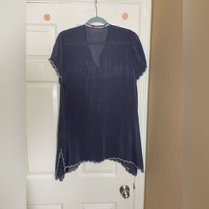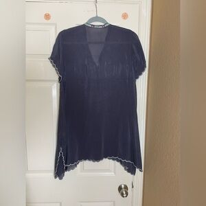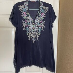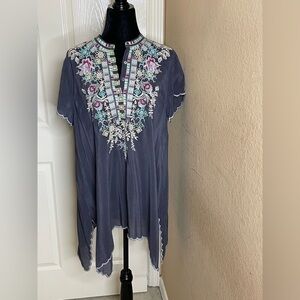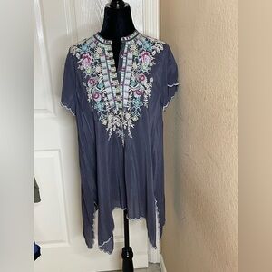 Johnny Was Livana Embroidered Floral Short Sleeve Tunic Gray Med