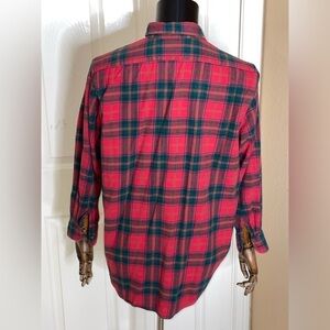 This vintage Abercrombie & Fitch shirt is a must-have for any fashion enthusiast. The heavyweight flannel fabric makes it perfect for cooler weather, while the red plaid pattern and button accents give it a classic 90s look. The long sleeves and button closure provide a comfortable and stylish fit, and the size small makes it a great addition to any wardrobe. The shirt is in excellent shape and ready to be worn on any occasion.