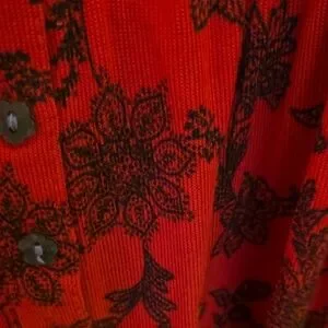 Charming red robe with floral pattern. Features delicate lace trim. Ideal for relaxation. Cozy and comfortable.