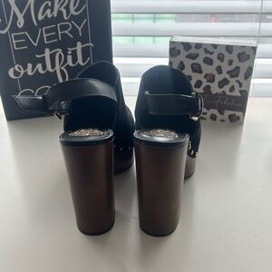 Vince Camuto Black Suede Mules with Gold Accents