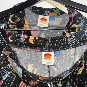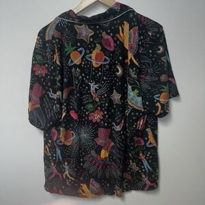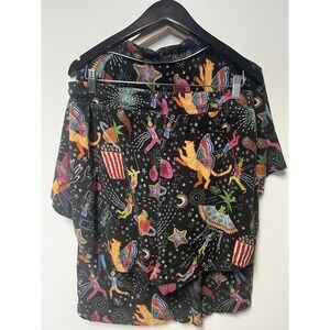 Anthropologie X Farm Rio Comic Pajama 2 Piece Set Shorts Button Up Womens Large
