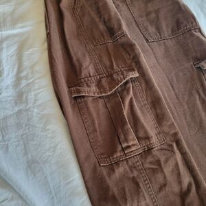 Brown Cargo Pants Small Cotton Utility Wide Leg Y2K Streetwear Size Medium