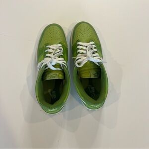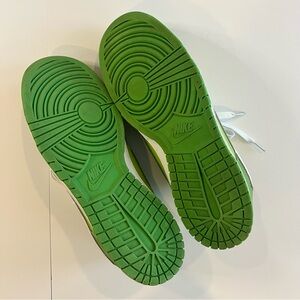 Nike Dunk Low Chlorophyll features a light green leather upper with dark green overlays and white swooshes. Size 13