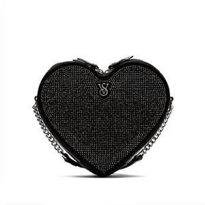 Victorias Secret Black Rhinestone Heart Crossbody Bag