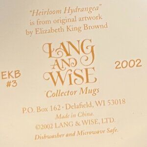 Vintage Lang and Wise Collector Mug "Heirloom Hydrangea" Artwork Elizabeth King Brownd ~ EKB#3 ~ 2002