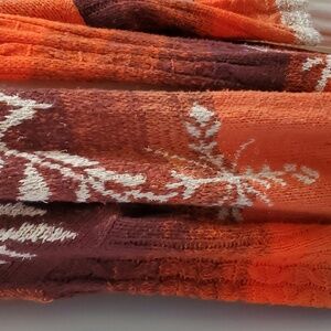 Beautiful dark burgundy, burnt oranges, and cream.