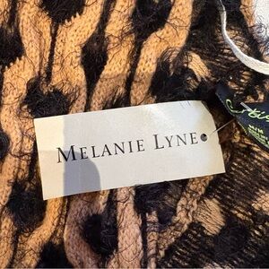 Cozy knit drop shoulder sweater with bold black and brown pattern. Perfect for layering. Size M very stretchy. Originally from Melanie Lyne priced at $145.