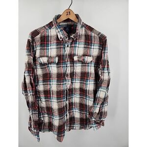George Mens Long Sleeve Button Up Plaid Flannel XL Shirt