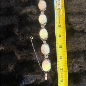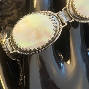 This is A exquisite Vintage Whiting & Davis Silver Tone with Mother of Pearl Bracelet. A perfect accessory to elevate your style. 7”