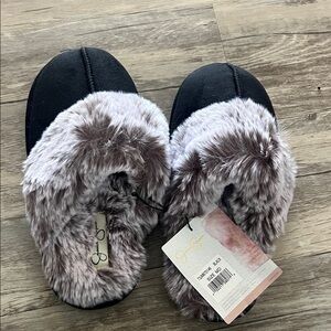 Jessica Simpson Black Slippers with Plush Gray Fur