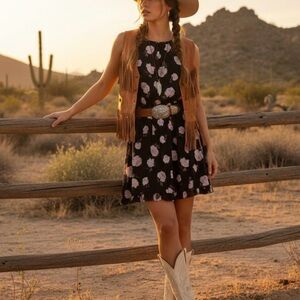 Abercrombie Fitch Dress Womens small Blue Floral Print Fit & Flare Ruffled Hem
