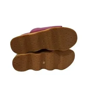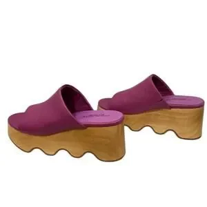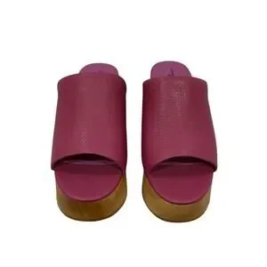 Charlotte Stone Truman Platform Mule Clog Leather Magenta Wood Sole Size 8