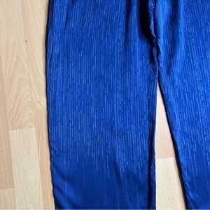 Festive, silk, royal blue, new years, holiday, winter, bow leg, loose, comfortable