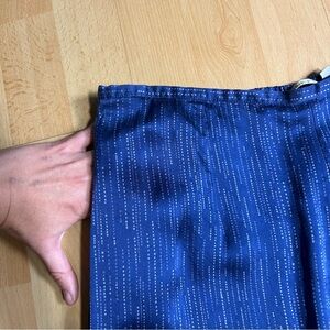 Vintage 100% silk cobalt blue bow leg pull on pant with white abstract polka dot detail that resemble the night sky! Front pockets, elastic along the back waistband. Size large in excellent preowned condition!