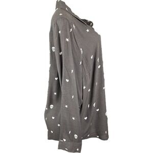 Torrid +2X Gray Skull Star Lightning Bolt Print Button Collar Long Sleeve Shirt