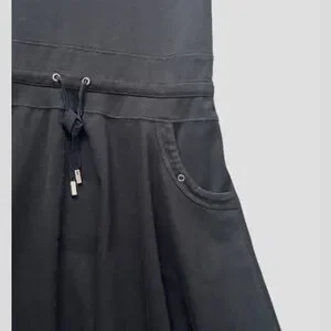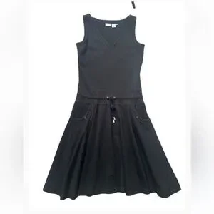 90’s Spiegel Elegant black dress with a V-neckline. Heavy Stretch Cotton material. Adjustable drawstring waistline. Lots of stretch. Features a drawstring waist and side pockets. Perfect for everyday wear. Chic and comfortable. Measurements in pics excellent condition