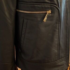 Sam Edelman Women’s Black Leather Jacket with Gold Zippers