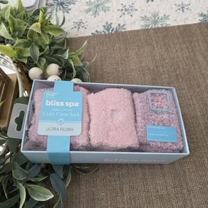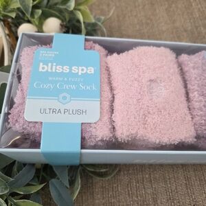 Experience ultimate comfort with Bliss's pink cozy crew socks. Perfect for relaxation and self-care.
