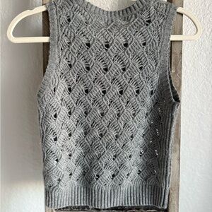 Elegant gray cashmere sweater vest with a delicate knit design. Ideal for chic layering.
