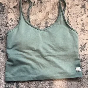 Stylish green V-neck tank top with a comfortable fit. Perfect for casual wear.