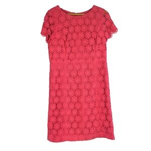 Talbots Petite Larosa Coral Pink Crochet Lace Short Sleeve Sheath Dress Size 10p
