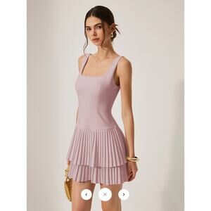 This is a beautiful Commense square neck pleated dress. It is a size medium, new wth tag. The dress features a flattering square neckline and delicate pleating throughout.